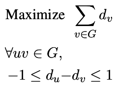 p.add_constraint( -1 <= d[u] - d[v] <= 1 )