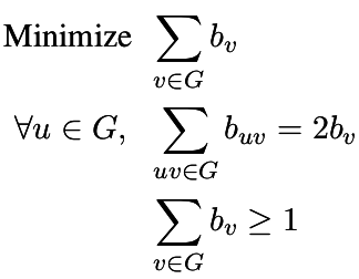 p.add_constraint( sum(b[Set(e)] for e in edges) == 2)